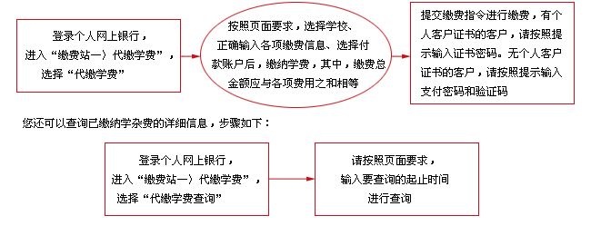 网上银行为您提供7*24小时全天候服务,正常情况下资金实时到账,并且可以查询已缴纳学杂费的详细信息。